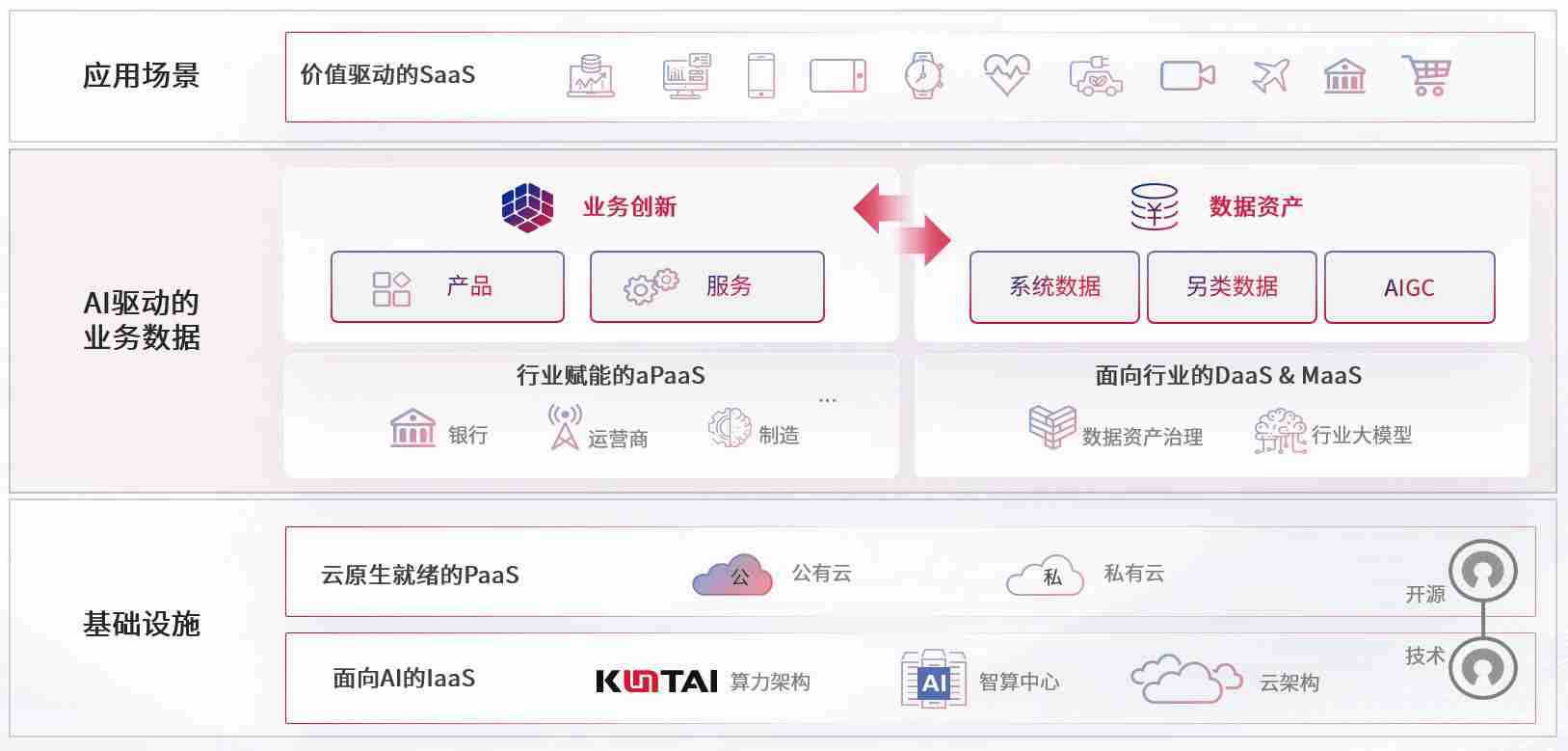 数字时代,,,,围绕企业数字化转型的关键要素,,金年汇数码开创性的提出数云融合战略和技术体系框架,,着力在云原生、、、、数字原生、、、AI原生和信创产业上架构产品和服务能力,,,,为处在不同数字化转型阶段的快消零售、、、汽车、、、金融、、医疗、、、、政企、、教育、、运营商等行业客户提供泛在的敏捷IT能力和融合的数据驱动能力,,,构建跨界融合创新的数字业务场景和新业务模式,,,助力企业级客户建立面向未来的核心能力和竞争优势,,,全面推动社会的数字化、、、、智能化转型升级。。